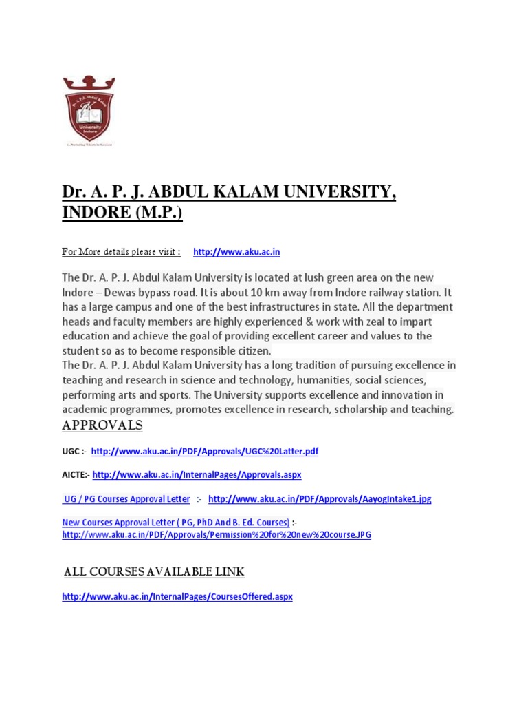 Apj Abdul Kalam University Indore : Places indore, india dr a p j abdul kalam university, indore. Apj Abdul Kalam University Indore : Still the companies visiting the campus did you always feel safe on campus?yes.