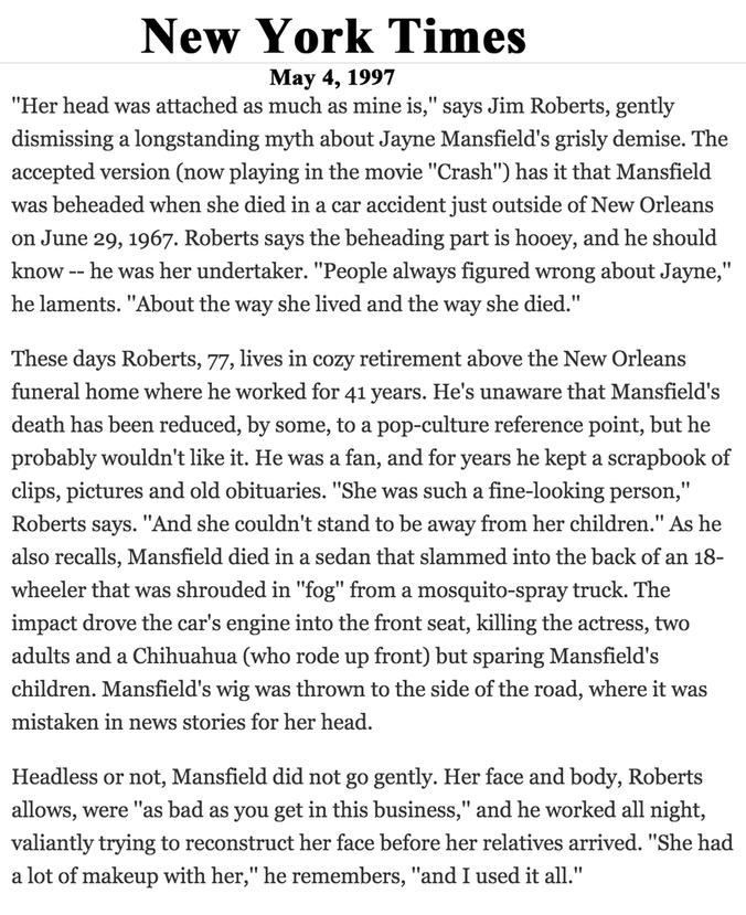 Jayne Mansfield Death Car Today / The death of actress jayne mansfield who died and was decapitated in a car accident. Jayne Mansfield Death Car Today / 3264 x 2448 jpeg 2060 kb.
