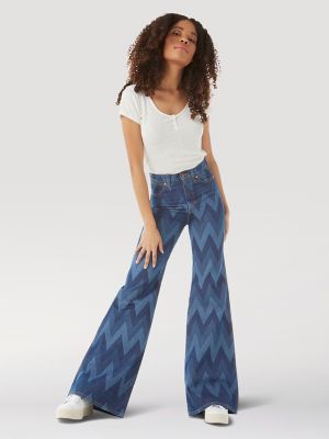 The New Women S Heritage Fit Jeans Wrangler Asia Pacific - Women's wrangler® laser striped wanderer 622 high rise flare jean.